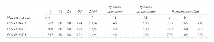 - Длина кабеля поплавкового выключателя: 0,5 метра