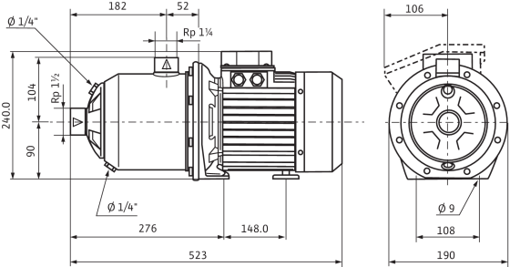 - Секции насоса: нержавеющая сталь 1.4301 [AISI304]